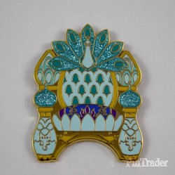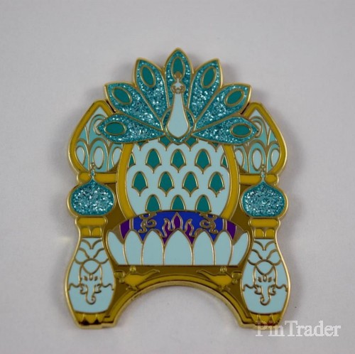 | This is a listing for the limited release Jasmine (Aladdin) throne pin ONLY from the Disney Princess Royal Hall Mystery Collection. The pin is in the shape of a throne. The Jasmine throne pin features a peacock, the magic carpet, and the palace of Agrabah. |