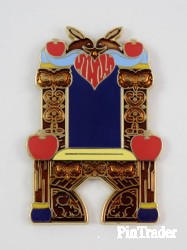 | This is a listing for the limited release Snow White (Snow White and the Seven Dwarfs) throne pin ONLY from the Disney Princess Royal Hall Mystery Collection. The pin is in the shape of a throne. The Snow White throne features the poison apples, two rabbits, wood carvings, and the colors of Snow White's dress. |