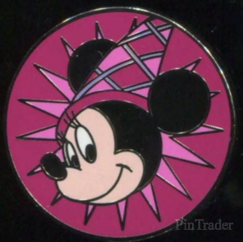 | This is Minnie Mouse only from the Magical Mystery Pins set. It features Minnie Mouse wearing a princess hat with a starburst behind her and a pink background. |