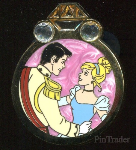 | This is a revealed pin in the Disney Couples Mystery Collection - Reveal & Conceal. This pin features Cinderella and Prince Charming (aka Prince Henry) from Walt Disney's Cinderella. The revealed pin was shown in a ring cut-out in the front of the box. The concealed pin was inside a black bag, behind the revealed pin. The price listed is the price for the 2 pins (in one box). |