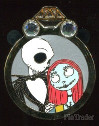 | This is a concealed pin in the Disney Couples Mystery Collection - Reveal & Conceal. This pin features Jack Skellington and Sally from Tim Burton's "The Nightmare Before Christmas." The revealed pin was shown in a ring cut-out in the front of the box. The concealed pin was inside a black bag, behind the revealed pin. The price listed is the price for the 2 pins (in one box). |