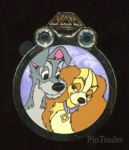 | This is a concealed pin in the Disney Couples Mystery Collection - Reveal & Conceal. This pin features Lady and Tramp from Walt Disney's "Lady and The Tramp." The revealed pin was shown in a ring cut-out in the front of the box. The concealed pin was inside a black bag, behind the revealed pin. The price listed is the price for the 2 pins (in one box). |