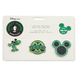 | Disney Store monthly series of collectible cloisonné pins inspired by Mickey's living legacy in a career that began in 1928 and shows no sign of slowing in the digital age. Mickey celebrated his 90th Anniversary in 2018. • Green enameled cloisonne. • ''Disney Pin Trading 2018'' symbol on back. • Sold on commemorative card. • Tenth of 12 sets in monthly series. • Up to 1 3/4'' H. |