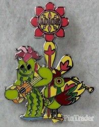 | 12 pins in the set, each featuring characters from It's A Small World attraction saying "Good Bye" in various languages. • Panda eating a bamboo stalk (China) - Zai Jian • Japanese girl (Japan) - Sayonara • Cactus and a Bird (Mexico) - Adios • Penguin wearing a hat (South America) - Adios • Tribal person, banging a drum (Hawaii / Polynesia) - Aloha • British / English boy / Yeomen of the Guard (England) - Good Bye • Cowboy riding a horse (America) - Good Bye • Koala hanging on a palm tree (Australia) - Good Bye • Elephant (India) - Namaste • Dutch (Holland) girl - Vaarwel • Hippopotamus (Africa) - Salani Kahle • Goat (Germany) - Auf Wiedersehen Two pins per box |
