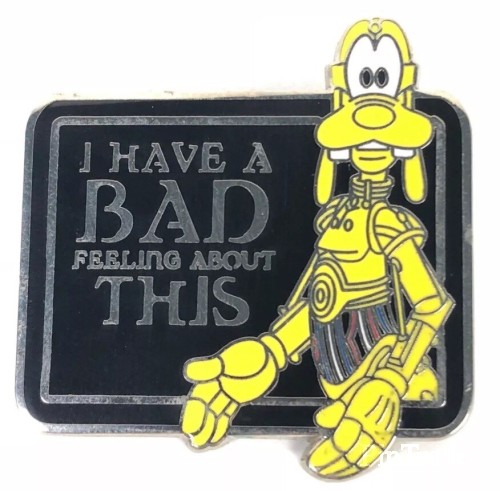 | This open edition mystery box features Disney Characters as Star Wars characters with quotes from the movie. This is a listing for a pin featuring Goofy as C-3PO - "I have a bad feeling about this" Two pins per box |