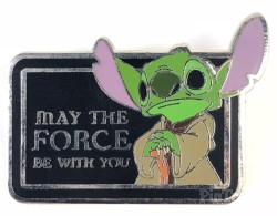 | This open edition mystery box features Disney Characters as Star Wars characters with quotes from the movie. This is a listing for a pin featuring Stitch as Yoda - "May The Force Be With You" Two pins per box |