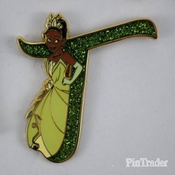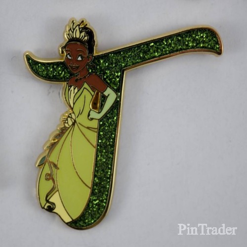 | The letter "T" is green and glittery. Tiana is wearing her green lily pad dress. Two pins per box |