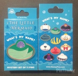 | Sold at cast member stores near Disneyland (DLR) and Walt Disney World (WDW). Set of 11 pins feature: • Ariel (The Little Mermaid) • Prince Eric • King Triton • Sebastian • Flounder • Scuttle • Max (the dog) • Ursula • Flotsam & Jetsam (eels) • Chef Louis • Grimsby Two pins per box |