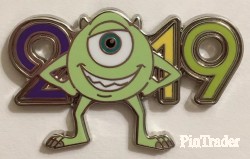 | Mike Wazowski (Monster's Inc.). Mike is blocking the zero "0" in "2019." Two pins per box |