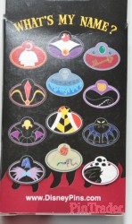 | This mystery set of 12 Cast Exclusive pins in the "What's My Name - Villains" series are sold in boxes of 2 pins. Set Includes: Captain Hook Evil Queen Lady Tremaine Jafar Hades Ursula Maleficent Queen of Hearts Chernabog Yzma Oogie Boogie Cruella De Vil |