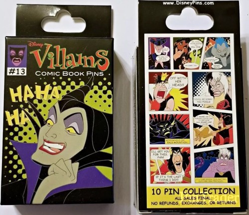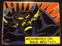 | A Set of 10 mystery pins featuring famous Disney Villains in Comic Strip form along with a quote. This pin features Chernabog (Fantasia) and the tag line Meanwhile On Bald Mountain Two pins per box. |