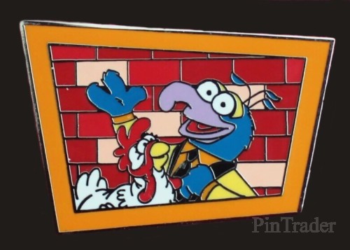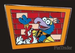 | This pin features Gonzo the Great & Camilla the chicken inside an orange frame |