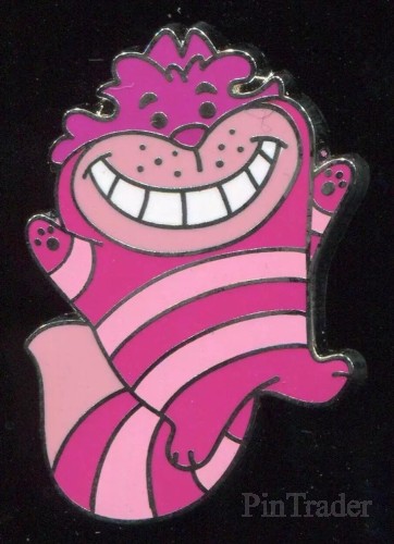 | This is the Cheshire Cat from the Alice in Wonderland mystery set, based on Mary Blair's concept art. He is striped in light and dark pinks, grinning, with all his paws spread out and his tail very bushy. Two pins per box. |