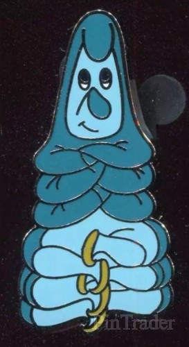 | This is the Caterpillar from the Alice in Wonderland mystery set, based on Mary Blair's concept art. The bluish-green caterpillar looks straight front, with three pairs of arms and three pairs of legs crossed. Two pins per box. |