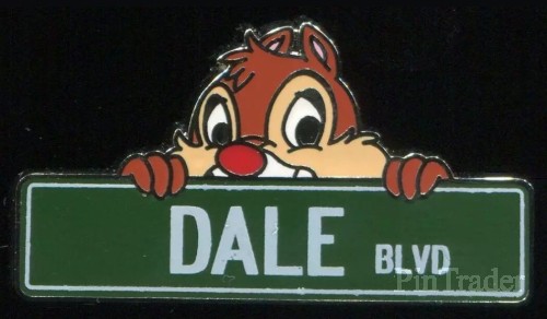 | Dale is looking over the top of a street sign stating Dale Boulevard. This pin is one of eight in the Street Signs Mystery Box set. Each box contains two randomly selected pins. |