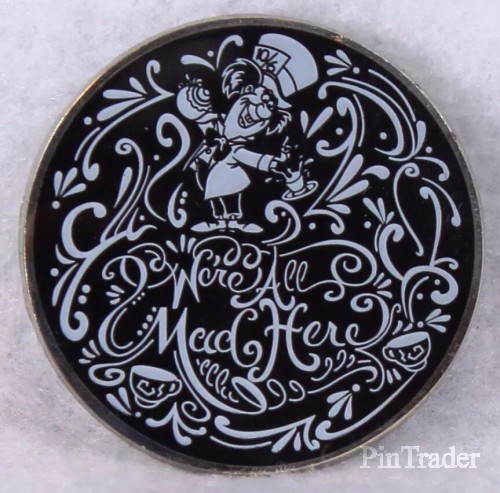 | From OPDT.com: "Alice chalkboard art-inspired booster set pins. This set features characters from Disney’s 1951 animated film Alice in Wonderland. This set includes four pins. Alice, Cheshire cat, Mad Hatter, and the White Rabbit are all features in the pins. The pins feature a print screen element." |