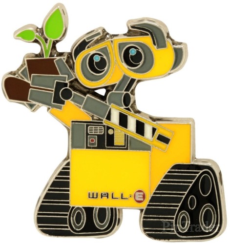 | WALL-E holding a boot with sign of life, plant up in the air. |