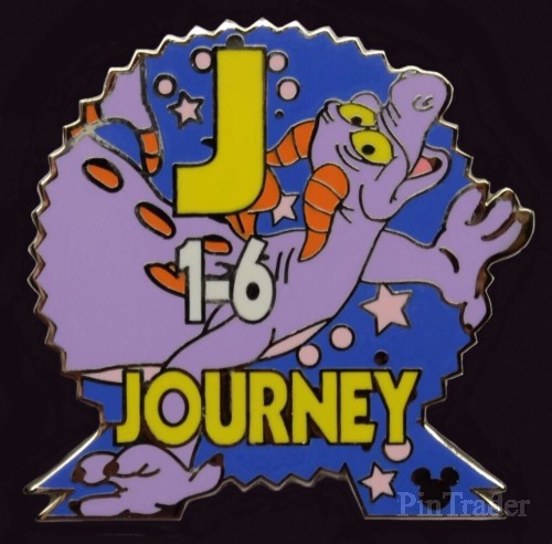 | This pin features the parking lot signs at Epcot that feature Figment. This is J 1 - 6 Journey with a blue spaceship earth as the background |
