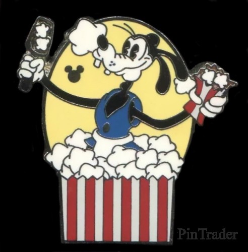 | This pin is one of the 2013 Hidden Mickey series, Wave A. The series shows classic characters as shown on Popcorn Labels. The Popcorn Series consists of 5 pins, two chasers and one completer. This pin is Goofy with a dark yellow background. |