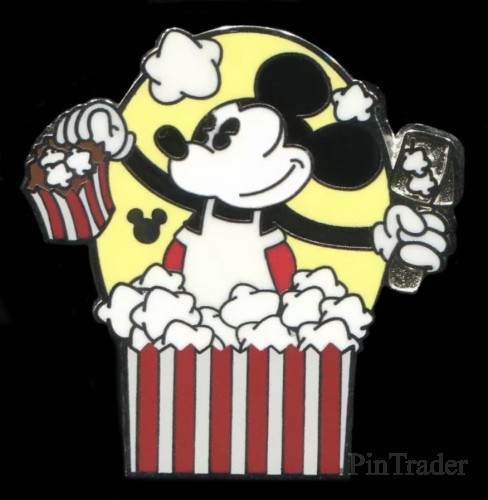 | This pin is one of the 2013 Hidden Mickey series, Wave A. The series shows classic characters as shown on Popcorn Labels. The Popcorn Series consists of 5 pins, two chasers and one completer. This pin is Mickey with a yellow background. |