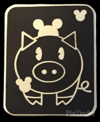 | Released at the PTU Event at WDW Epcot in September 2008. This pin features a stylized pig wearing a Mickey Mouse Ear Hat. It is part of a five pin Pets with Mouse Ears collection. |