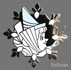 | This 12 pin series does not feature the typical hidden Mickey symbol on the front of the pin, but the reverse does state that it is a hotel Hidden Mickey. This is pin features Flora on a snowflake shaped pin. Every reservation during the promo period will receive 1 pack of pins. Each mystery pack contains 3 pins. |