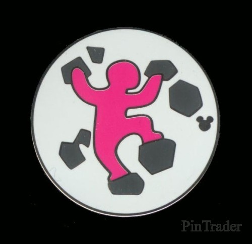| This pin is meant to resemble one of the badges available at the Redwood Creek Challenge Trail. This pin resembles one of badges that Russell, from the movie Up, wears. This pin is a circle with a pink colored kid rock climbing in the middle. A silver hidden mickey icon is located on the right side of the pin. |