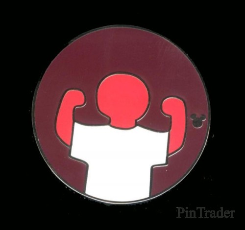 | This pin is meant to resemble one of the badges available at the Redwood Creek Challenge Trail. This pin resembles one of badges that Russell, from the movie Up, wears. This pin is a circle with a kid wearing a white shirt flexing his muscles. A silver hidden mickey icon is located on the pin. |