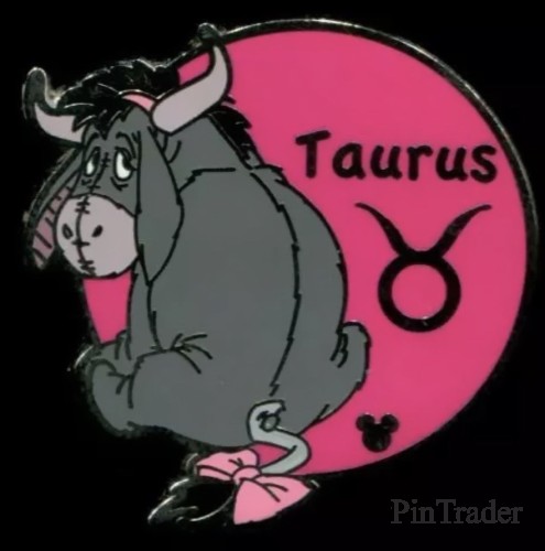 | This pin features Eeyore from Winnie the Pooh, in the role of Taurus the Bull for the Hidden Mickey 2012 Zodiac Collection. The back of the pin reads "Hidden Mickey Pin 2 of 12." There is also copyright information for the creators of Winnie the Pooh. A shared release between Disneyland Resort (DLR) and Walt Disney World (WDW). Hidden Mickey Zodiac Collection 2012, features the 12 zodiac signs |