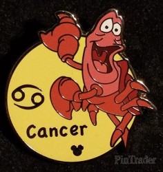 | This Hidden Mickey 2012 Zodiac Collection pin features Sebastian the crab from Disney's The Little Mermaid. Sebastian represents the zodiac sign of Cancer (the crab.) A shared release between Disneyland Resort (DLR) and Walt Disney World (WDW). Hidden Mickey Zodiac Collection 2012, features the 12 zodiac signs |