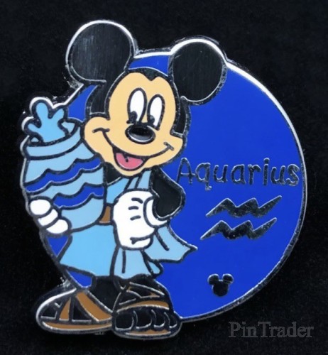 | This 2012 Hidden Mickey Zodiac Pin Collection features Mickey Mouse. Mickey Mouse represents Aquarius the Water Bearer from the Zodiac. A shared release between Disneyland Resort (DLR) and Walt Disney World (WDW). Hidden Mickey Zodiac Collection 2012, features the 12 zodiac signs |