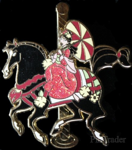 | One of 10 pins in a conceal reveal set. Princess and Carousel animal move up and down on gold carousel pole. |