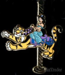 | One of 10 pins in a conceal reveal set. Princess and Carousel animal move up and down on gold carousel pole. |