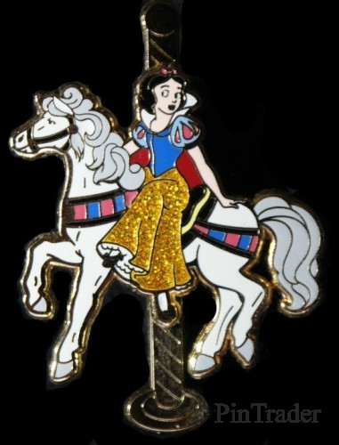 | One of 10 pins in a conceal reveal set. Princess and Carousel animal move up and down on gold carousel pole. |