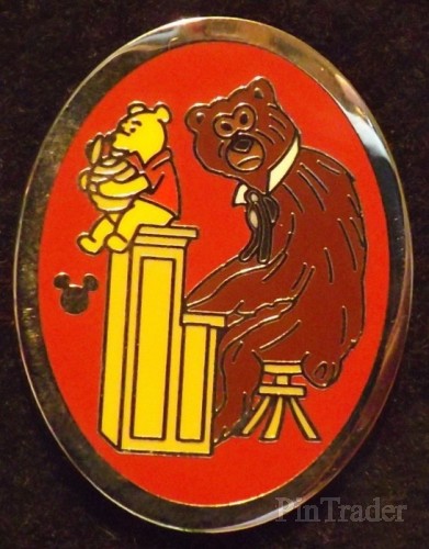 | This pin features Winnie The Pooh sitting on top of a piano being played by Gomer, a bear from The Country Bear Jamboree. |