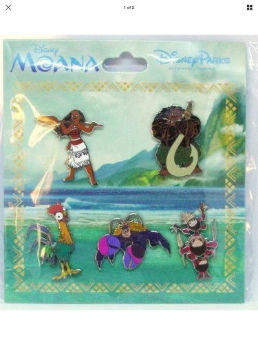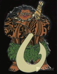 | Part of a 5 pin booster set; this listing is for Maui, who is standing with his arms crossed in front of himself; holding tighly to his magical fish hook. |
