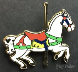 | This is one of eight hidden mickey pins, featuring the carousel horses on the King Arthur's Carousel ride in Fantasyland. This pin features a horse with a green, yellow, blue and red saddle. Based on the actual carousel horse named Keiffer. 6 of 8 |