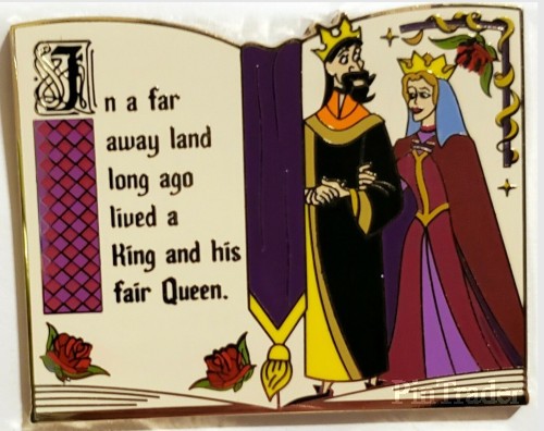 | 2 pins per box. The pin is in the shape of an open book. On the right side of the pin/book are King Stefan and Queen Leah. On the left side of the pin/book, it reads "In a far away land long ago lived a King and his fair Queen." Pins release first at the Disneyland Resort Pin Trading Night / Event on February 21, 2019, before releasing at the Walt Disney World Pin Trading Night / Event on February 28, 2019. |