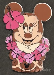 | Brown and Beige Minnie Tiki wearing a light pink and dark pink flower lei. A dark pink flower is behind her ear. Based on the tiki gods outside of the Enchanted Tiki Room. Pin 2 of 6 |