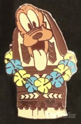 | Brown and Beige Pluto Tiki wearing a blue and green flower lei. Based on the tiki gods outside of the Enchanted Tiki Room. Pin 5 of 6 |