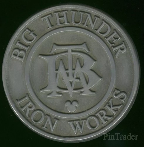 | This pin features the logo for the Big Thunder Mountain Iron Works |