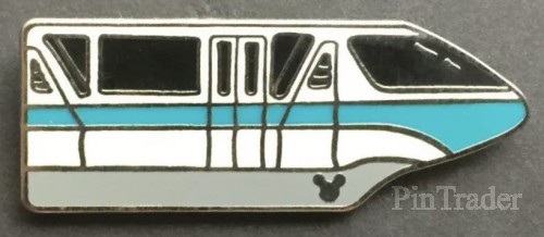 | This pin features a monorail cab in white and light blue |