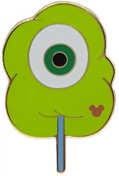 | This game pin was release during the Pin Trading Carnival in Hong Kong Disneyland in March 2018. This pin features Mike Wazowski from the movie Monsters, Inc. in the shape of a cotton candy. His head is show in the completely green cotton candy. In the center you can see his big white eye. On the right corner side the hidden mickey logo is printed. These pins could only be won by playing games during the Pin Trading Carnival, and could not be bought. The complete set of 12 pins could be collected and placed on a card that’s in the shape of dinner cart. The back of the pin has the FAC code 020070-17349 and shows the text Hidden Mickey pin series 11 of 12 |