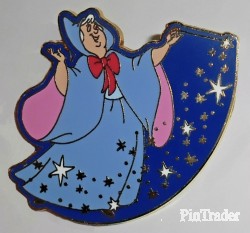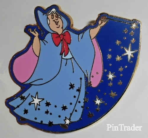 | This pin has the Fairy Godmother from "Cinderella." She is wearing her usual light blue and pink cape while flying to the right, through "fairy dust". Pin 2 of 4 in the series. This pin does NOT have a hidden mickey icon. |