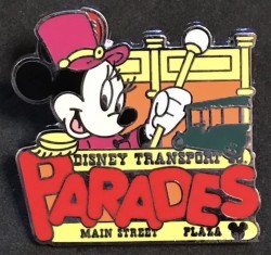 | This series of pins were given to guests checking in to three Disneyland resorts and were also available during Mickey's Pin Festival of Dreams. Each depicts a character and an associated word. This pin shows Minnie Mouse dressed as a band leader. |