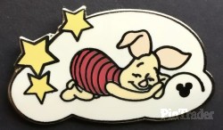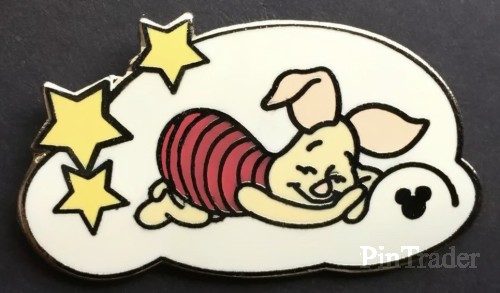 | Piglet from Winnie the Pooh is sleeping on a cloud. Three stars float above him. |