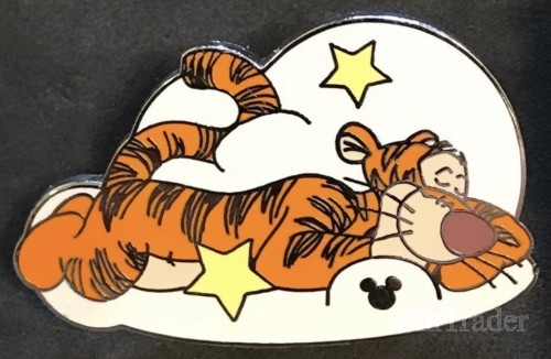 | Tigger from Winnie the Pooh is sleeping on a cloud. Stars float around him. |
