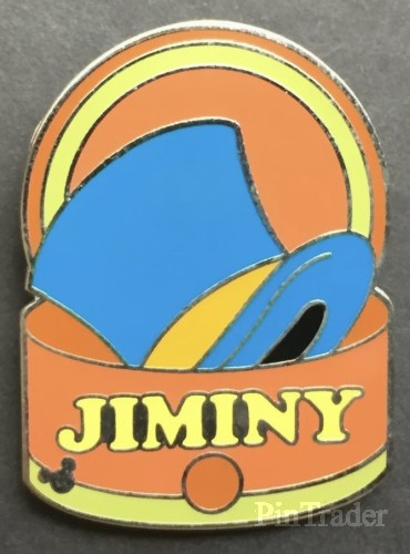 | Pin is a hat box with the hat of a Disney character inside. This pin is Jiminy Cricket's blue top hat with a brown band. |