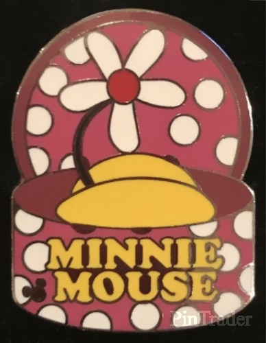 | Pin is a hat box with the hat of a Disney character inside. This pin is Minnie Mouse's classic yellow hat with a white daisy. |