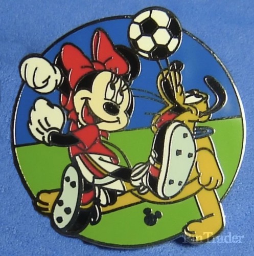 | Minnie Mouse plays soccer with Pluto. |